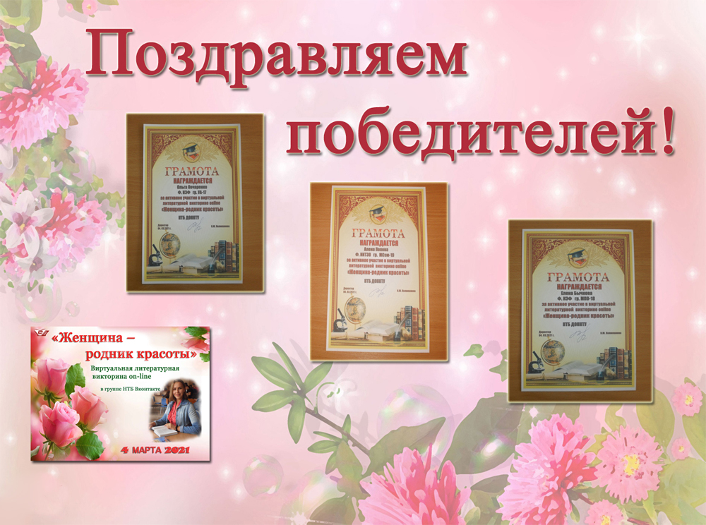 Научно-техническая библиотека 4 марта провела литературную онлайн-викторину «Женщина – родник красоты» ().