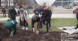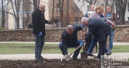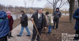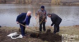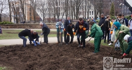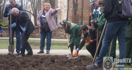 Сотрудники ДонНТУ заложили мемориальную аллею вуза в Донецком ботаническом саду (9 апреля 2021 г.)