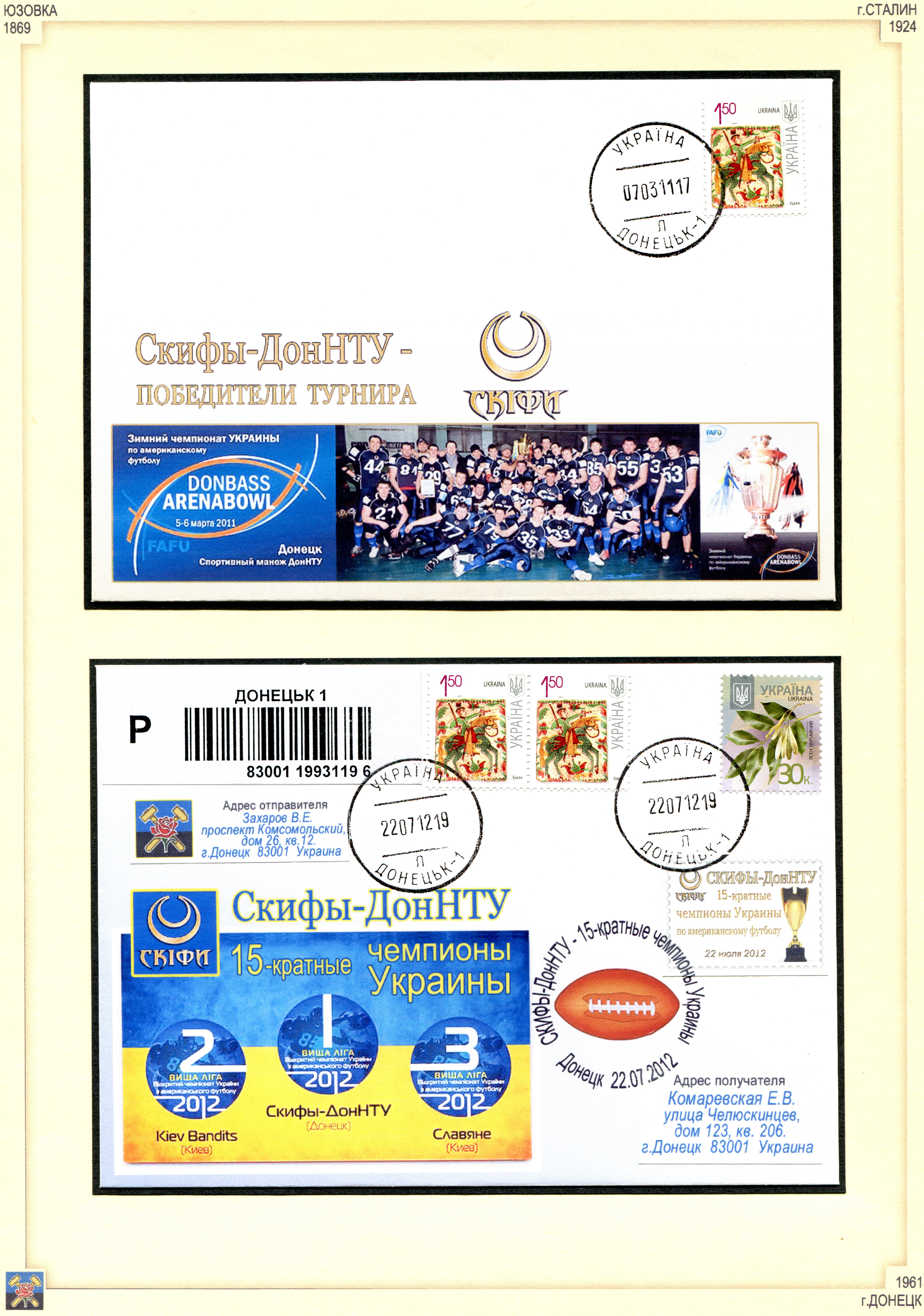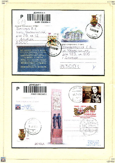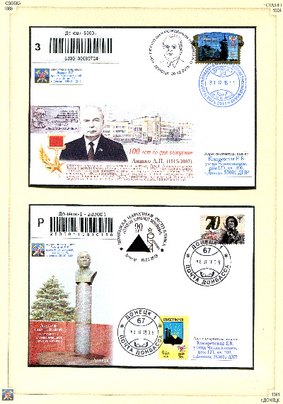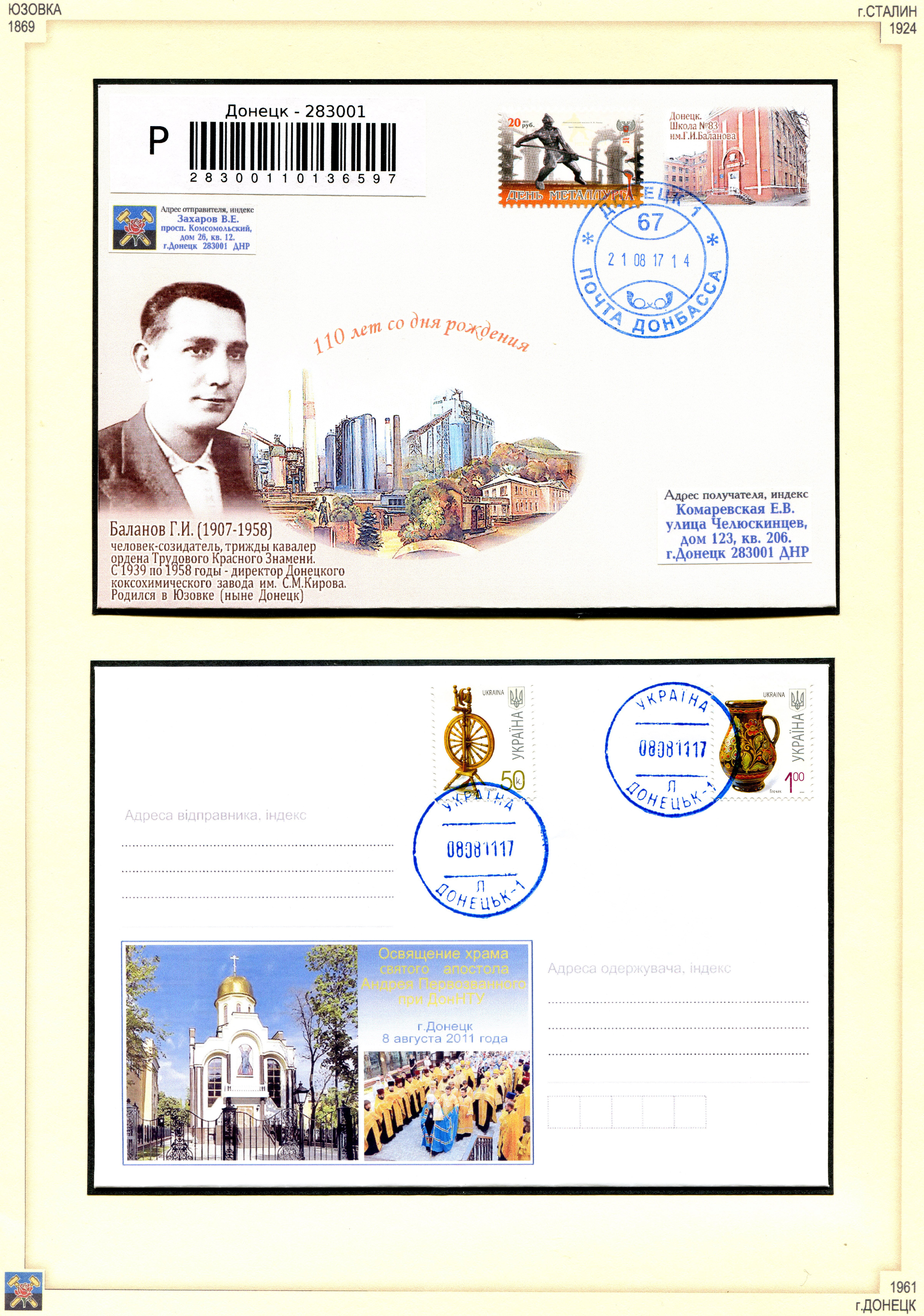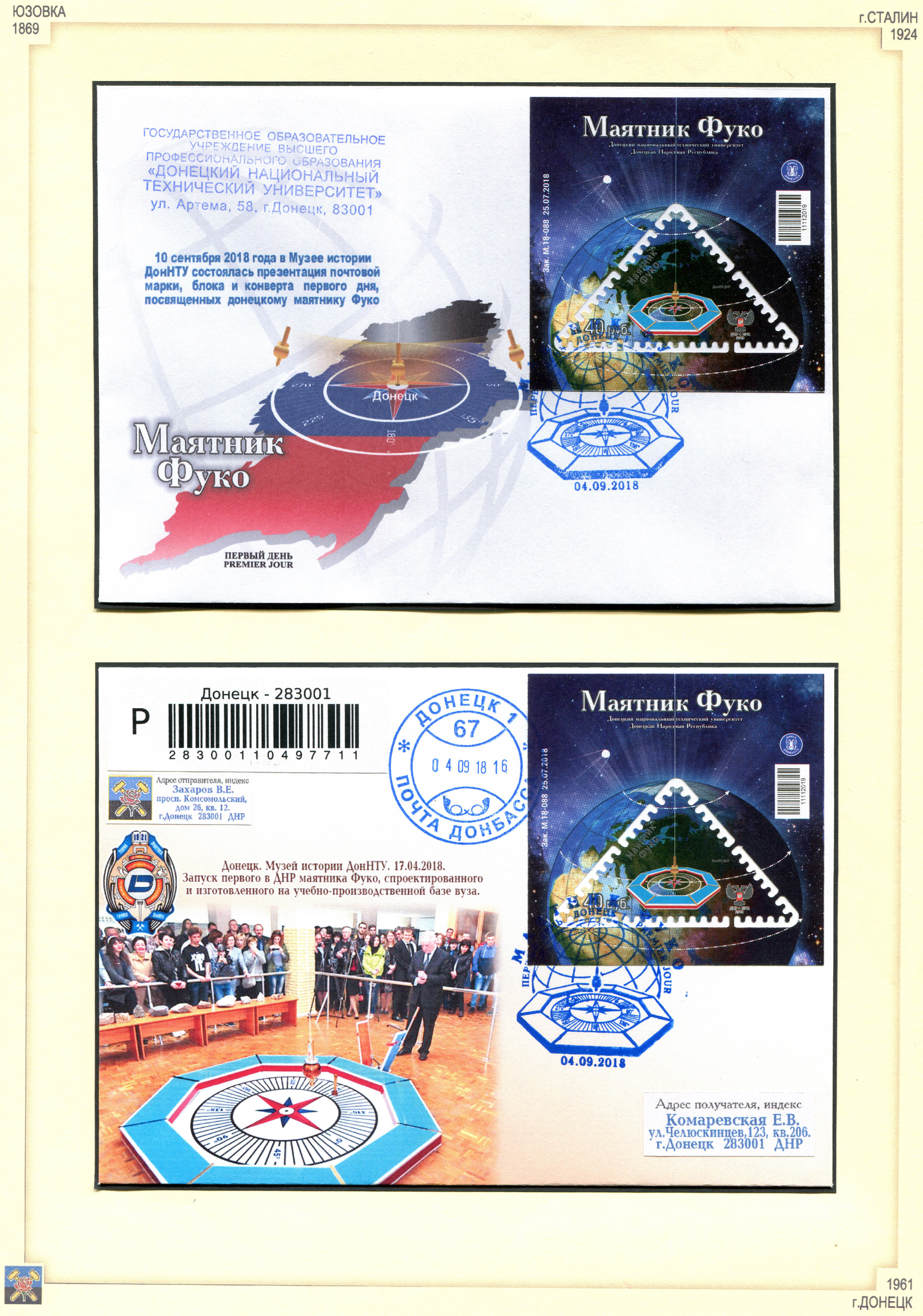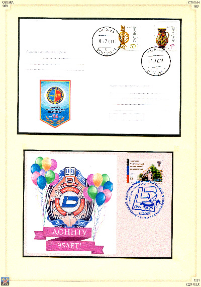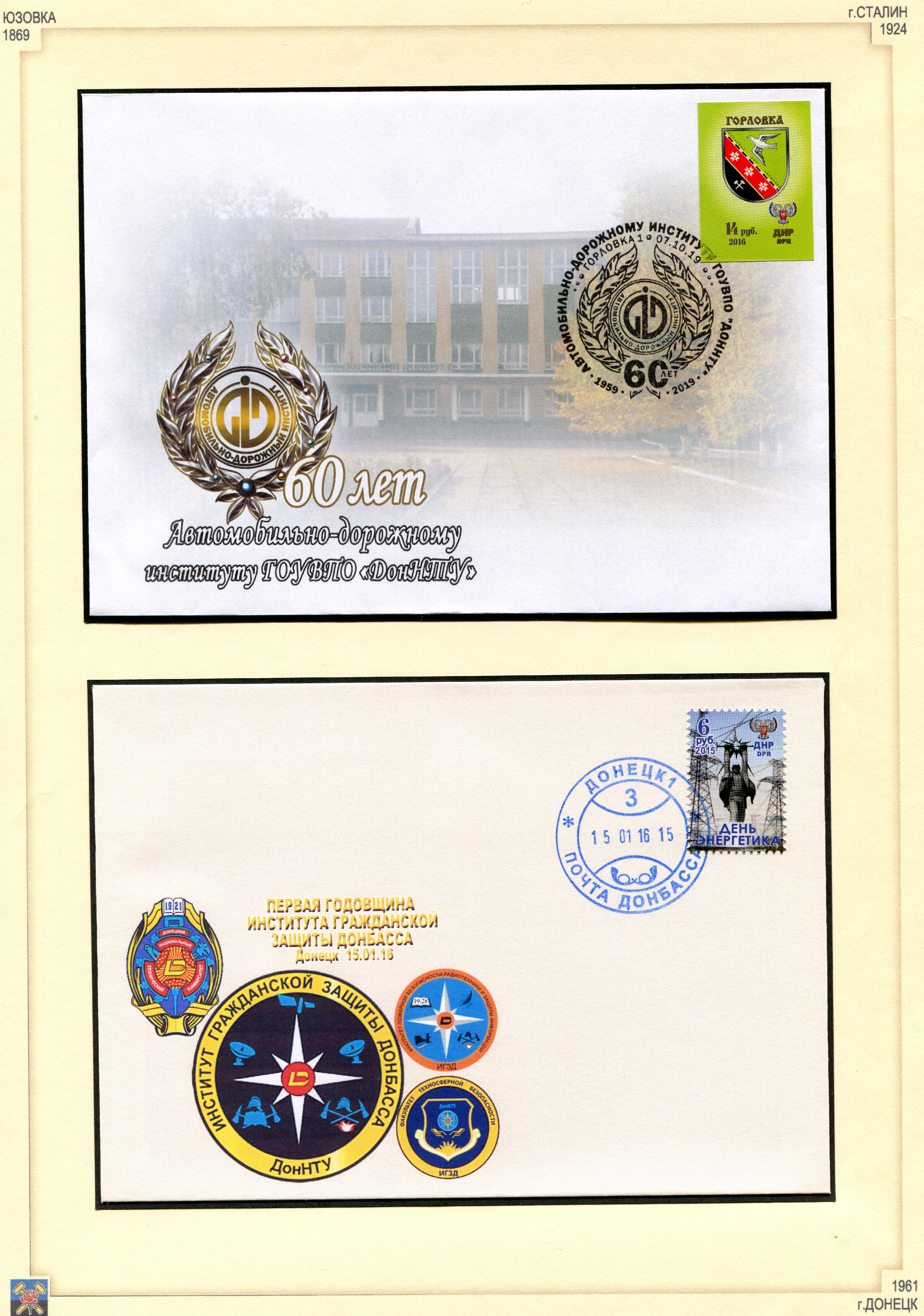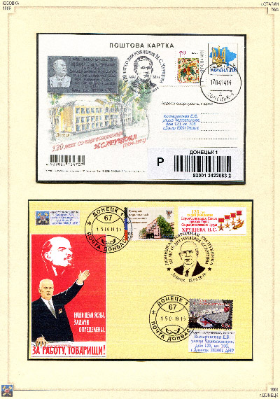 Филателистические материалы содержат как официальные издания почтовых ведомств Советского Союза, Украины и Донецкой Народной Республики, так и клубные конверты Донецкого общества филателистов, частные выпуски, а также почтовые открытки. Разница во времени их выхода в свет составляет более ста лет.