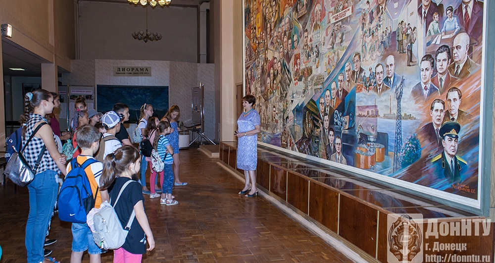 Познакомиться с историей первого в Донбассе высшего учебного заведения в дни школьных каникул в музей истории ДонНТУ приходят ребята из пришкольных летних лагерей. Их внимание привлекают и технические экспонаты, такие как маятник Фуко, катушка Теслы, и выставка, подготовленная к 150-летию города Донецка. Разновозрастной контингент юных экскурсантов находит свои разделы экспозиции – кого-то привлекает блеск минералов из геологической коллекции профессора Б. С. Панова, других интересуют действующие модели технических разработок ученых университета, третьи – внимательно рассматривают уникальную картину «История ДонНТУ».