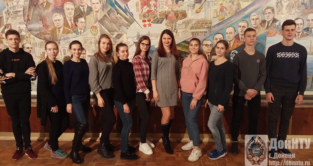 Директор Л. Д. Ковалева познакомила ребят с историей вуза, запечатленной на масштабной картине известного донецкого художника Егора Калмыкова, которая дает целостное представление об основных этапах развития университета, его выдающихся ученых и известных выпускниках.