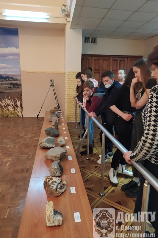 Директор музея истории ДонНТУ Л. Д. Ковалёва подробно рассказала о 100-летней истории ДонНТУ, этапах становления вуза, его выдающихся выпускниках и научных достижениях. Особый интерес у школьников вызвали картина «История ДонНТУ», выставка экспонатов, в том числе маятник Фуко и действующий макет катушки Теслы.