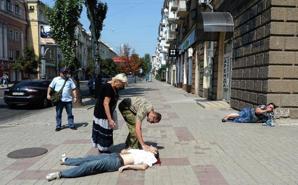 оказывают бойцы ополчения, прибывшие на звуки взрывов.
