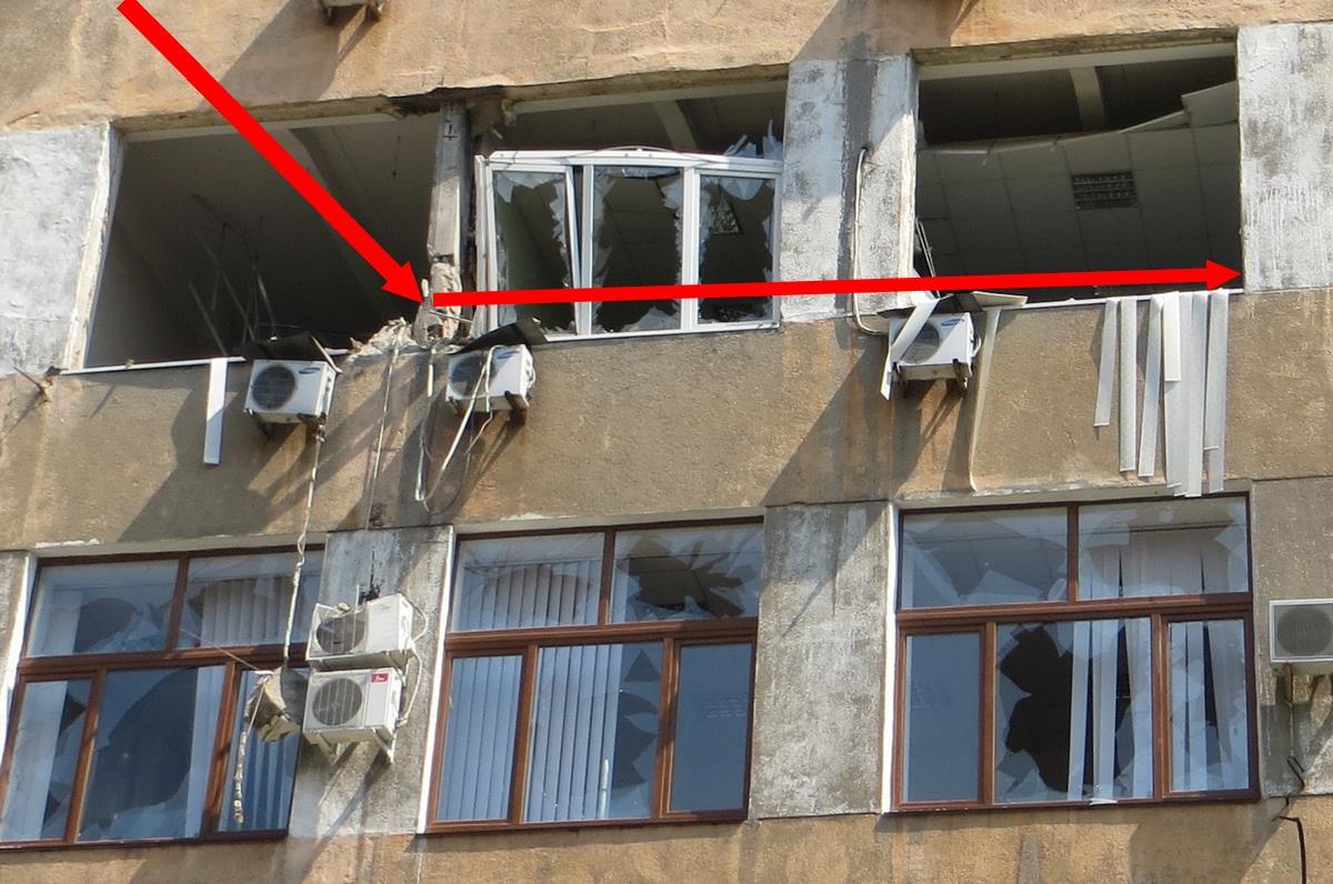Рис. 20 – Восстановленная схема попадания снаряда в кабинет проректора