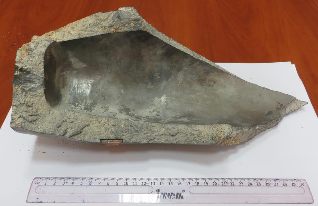 На врезке слева показан самый крупный осколок снаряда, обнаруженный