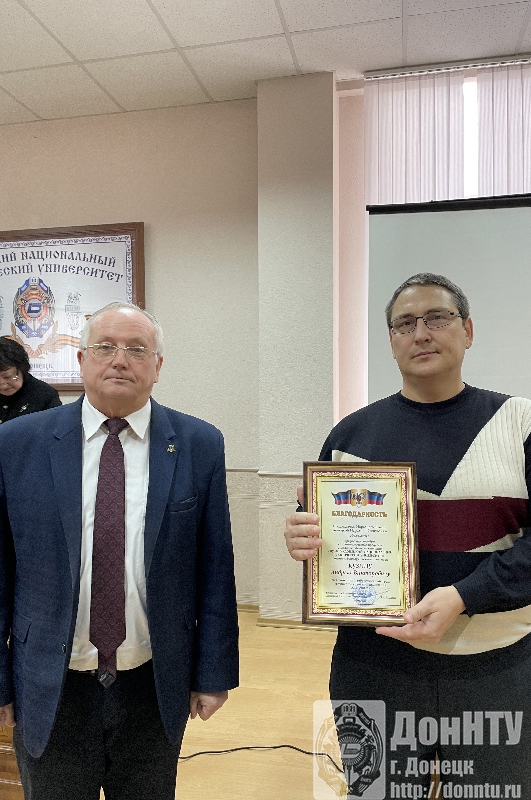 Благодарности от Председателя Народного Совета ДНР удостоен д-р техн. наук, профессор кафедры руднотермических процессов и малоотходных технологий А. В. Кузин.