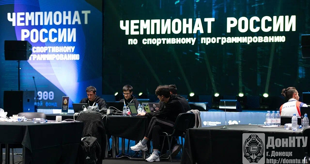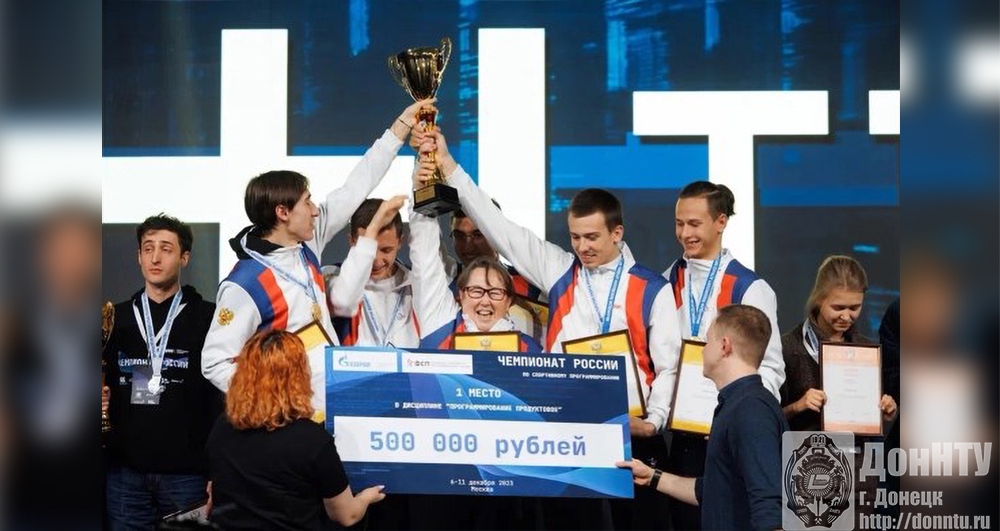 Команда «E-notGPT», уже не раз проявившая себя в этой сфере, одержала победу в дисциплине «продуктовое программирование». В её состав вошли студенты кафедры программной инженерии им. Л. П. Фельдмана Михаил Вавилин, Константин Руднев, Даниил Киселёв и студенты кафедры автоматизированных систем управления Леонид Сыгинь и Иван Сыгинь. Тренер команды – кандидат технических наук, доцент кафедры АСУ Елена Осиповна Савкова. Своего ошеломляющего успеха команда достигла при содействии Спортивного клуба ДонНТУ, став первым чемпионом России по спортивному программированию.