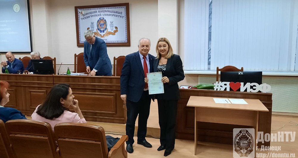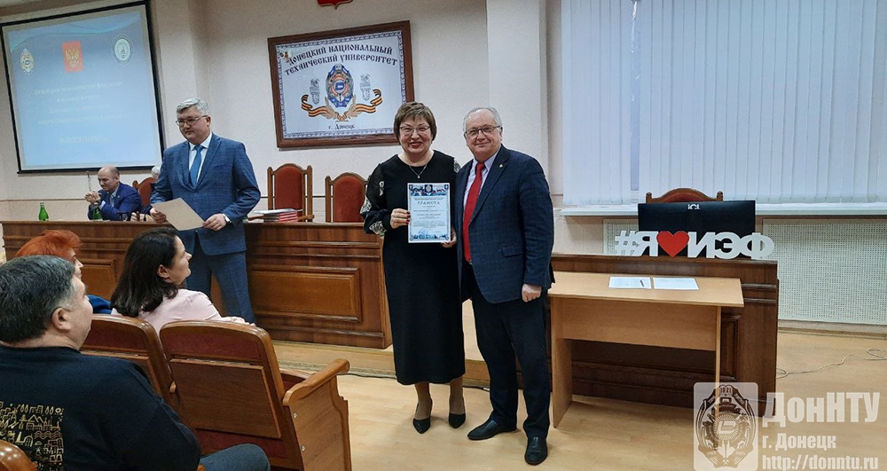 – грамоты ДонНТУ за профессионализм, успехи в научно-педагогической деятельности, значительный личный вклад в подготовку высококвалифицированных специалистов, формирование и развитие интеллектуального, культурного и нравственного потенциала студентов – декану ИЭФ, заведующему кафедрой экономики и маркетинга Андрею Анатольевичу Кравченко, заведующим кафедрами факультета Андрею Витальевичу Мешкову, Инне Александровне Кондауровой, Оксане Николаевне Шарнопольской, Людмиле Валериевне Шабалиной, Галине Александровне Портновой, Елене Николаевне Вишневской, заведующей кафедрой экономики предприятия и инноватики (2014–2019) Светлане Николаевне Крапивницкой; директору Института последипломного образования Елене Александровне Шумаевой, профессору кафедры Яне Владимировне Хоменко, доцентам кафедр факультета Виктории Витальевне Жильченковой (декан ИЭФ 2015–2021 гг.), Татьяне Борисовне Надтоке, Александру Васильевичу Ляхову, Анатолию Тимофеевичу Кучеру, и. о. министра труда и социальной политики ДНР, доценту кафедры управления бизнесом и персоналом Денису Игоревичу Стрельченко, начальнику отдела мобилизационной работы Мобилизационного департамента Главы ДНР, доценту кафедры экономической теории и государственного управления Борису Владимировичу Чегодаеву, директору Института экономических исследований, доктору экономических наук, доценту Алексею Владимировичу Половяну, заместителю директора по научной работе ИЭИ, кандидату экономических наук, доценту Наталье Владимировне Шемякиной, заведующему отделом моделирования экономических систем ИЭИ, доктору экономических наук, профессору Роману Николаевичу Лепе, заведующему отделом моделирования экономических систем ИЭФ, кандидату экономических наук, с.н.с. Алексею Валериевичу Матюшину;