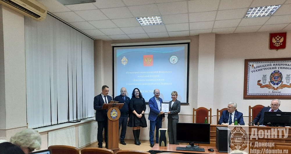 Также всем гостям были вручены экземпляры книги «Инженерно-экономический факультет в вековой истории Донецкого национального технического университета и Донбасса», изданной к юбилею факультета, и зачитаны поздравительные письма от Луганского государственного аграрного университета и Кемеровского государственного университета.