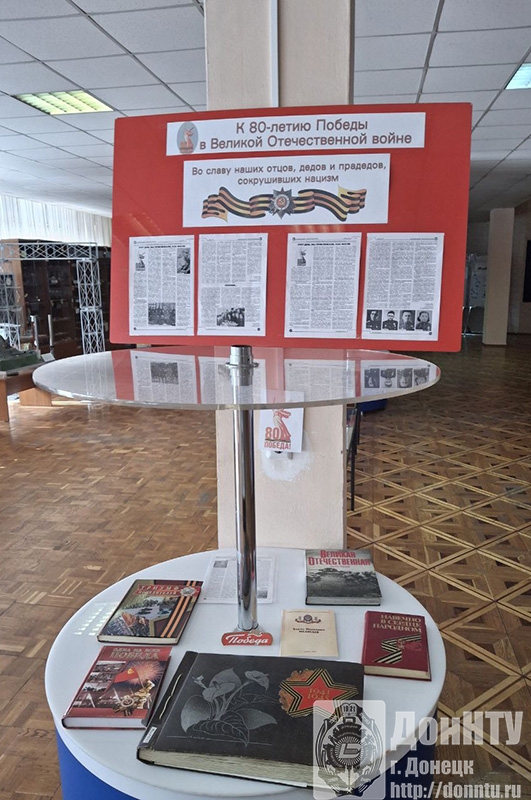 Ко Дню защитника Отечества в музее истории ДонНТУ (9.200) представлена экспозиция «Во славу наших отцов, дедов и прадедов, сокрушивших фашизм». Выставка рассказывает о прошлых и нынешних поколениях донецких политехников, внесших свой вклад в торжество мира и справедливости. Артефакты, документы, фотографии, личные вещи участников Великой Отечественной войны и специальной военной операции демонстрируют эпизоды военной жизни преподавателей, студентов и сотрудников Донецкого национального технического университета.