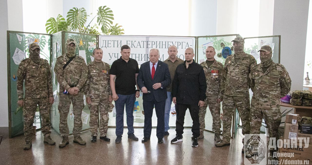 В преддверии Дня России, 11 июня, на площадке Донецкого национального технического университета была проведена акция по передаче гуманитарного груза, собранного волонтёрской группой города Екатеринбурга, военнослужащим Первой гвардейской славянской бригады. Бойцам, воюющим в зоне СВО, были переданы маскировочные сети, аптечки, дроны, средства радиоэлектронной борьбы.