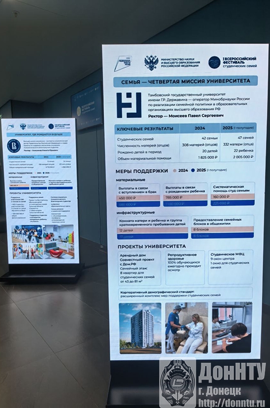 Глава Минобрнауки РФ Валерий Николаевич Фальков рассказал, что для информирования о мерах поддержки молодых семей, матерей и отцов с детьми в вузах для них запущен формат «единого окна». Кроме того, совместно с Минцифры России и Аналитическим центром Правительства РФ ведётся работа по созданию Навигатора мер поддержки студенческих семей на портале «Госуслуги».