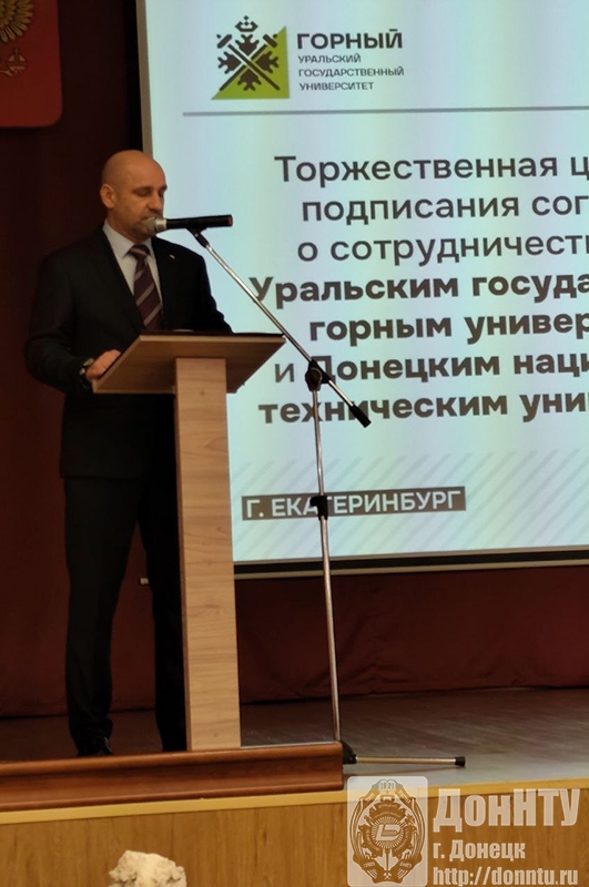 Ректор УГГУ Глеб Игоревич Батрак подчеркнул, что сегодня страна переживает сложные времена и необходимо объединяться, концентрироваться на задачах, оказывать поддержку друг другу и вместе двигаться к победе. Также он отметил, что подписание договора будет способствовать повышению квалификации инженеров Урала и Донбасса.