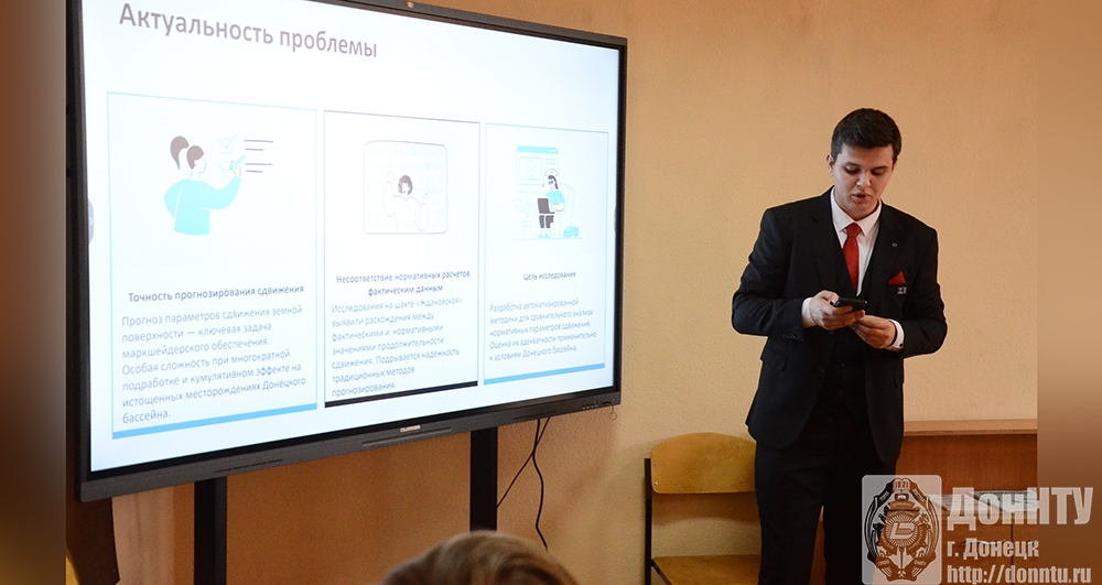 • III место – Эдуард Капинус, инженер Республиканского академического научно-исследовательского и проектно-конструкторского института горной геологии, геомеханики, геофизики и маркшейдерского дела, «Локализация участков повышенной крутизны склонов на подрабатываемых территориях Донбасса».