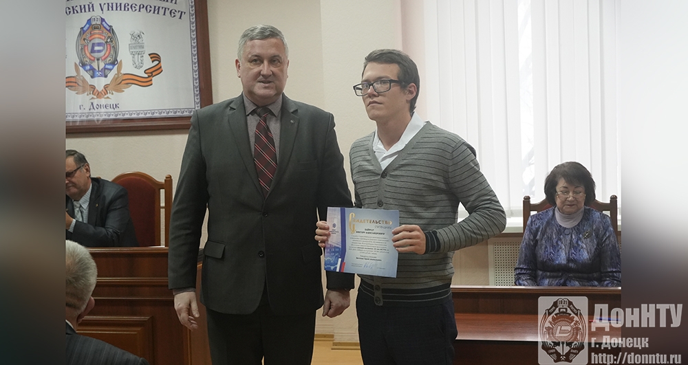 На заседании учёного совета ДонНТУ, которое прошло 28 ноября, состоялась торжественная церемония награждения студентов и преподавателей вуза. Мероприятие провёл первый проректор А. А. Каракозов.