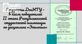 В Донецком национальном университете 12 марта состоялась Республиканская олимпиада по учебной дисциплине «Экология». В ней приняли участие и студенты факультета экологии и химической технологии Донецкого национального технического университета, которые вошли в число ее победителей.