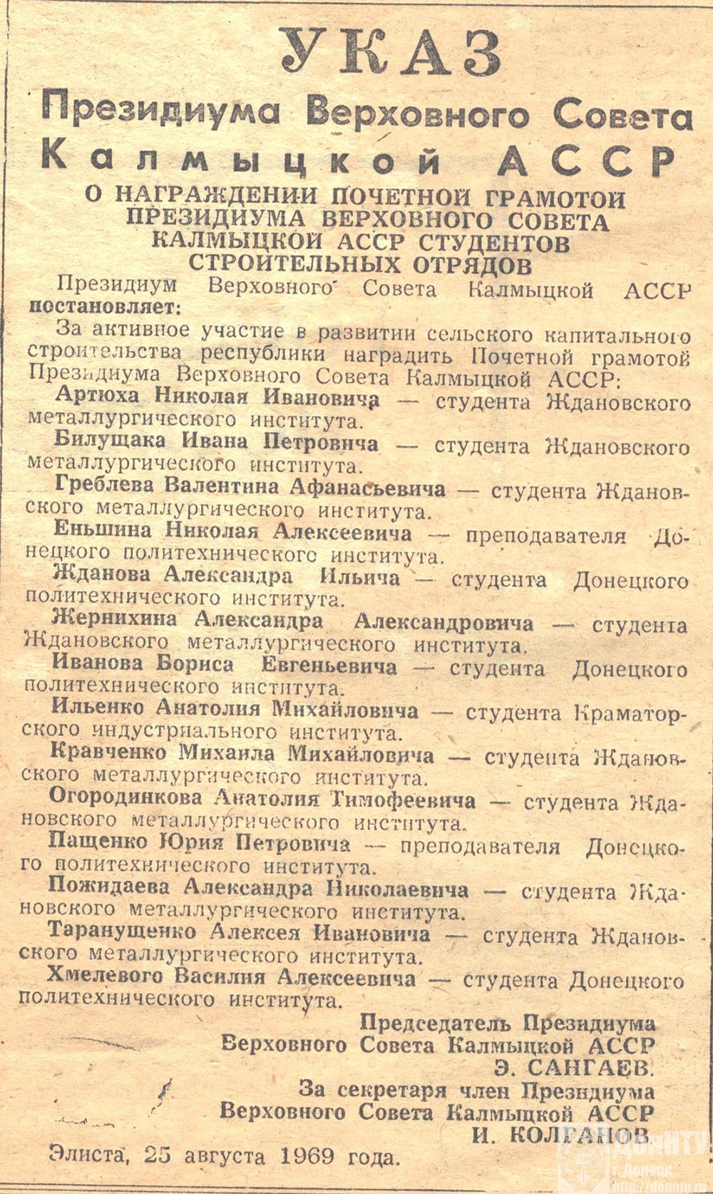 Третий трудовой семестр стал традицией студентов Донецкого политехнического института. Число вовлеченных в работу студенческих строительных отрядов, неуклонно росло. Приведем статистику по годам: 1966 г. – 800 студентов, 1967 – 850, 1968 – 920, 1969 – 1900, 1969 -1900, 1970 – 2000. Донецкие политехники традиционно трудились в Тюменской и Кустанайской областях, в Калмыкии и на многочисленных стройках Донбасса. Только за 1968-1970 годы было освоено около 3 млн. капиталовложений.