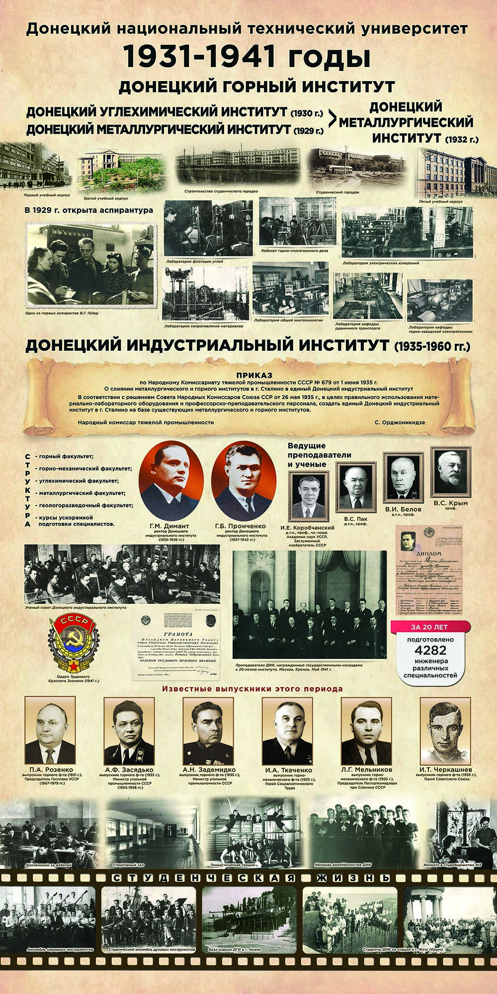 - По состоянию на 1 сентября 1934 г. в Донецком горном, металлургическом и углехимическом институтах обучалось более 1500 студентов.