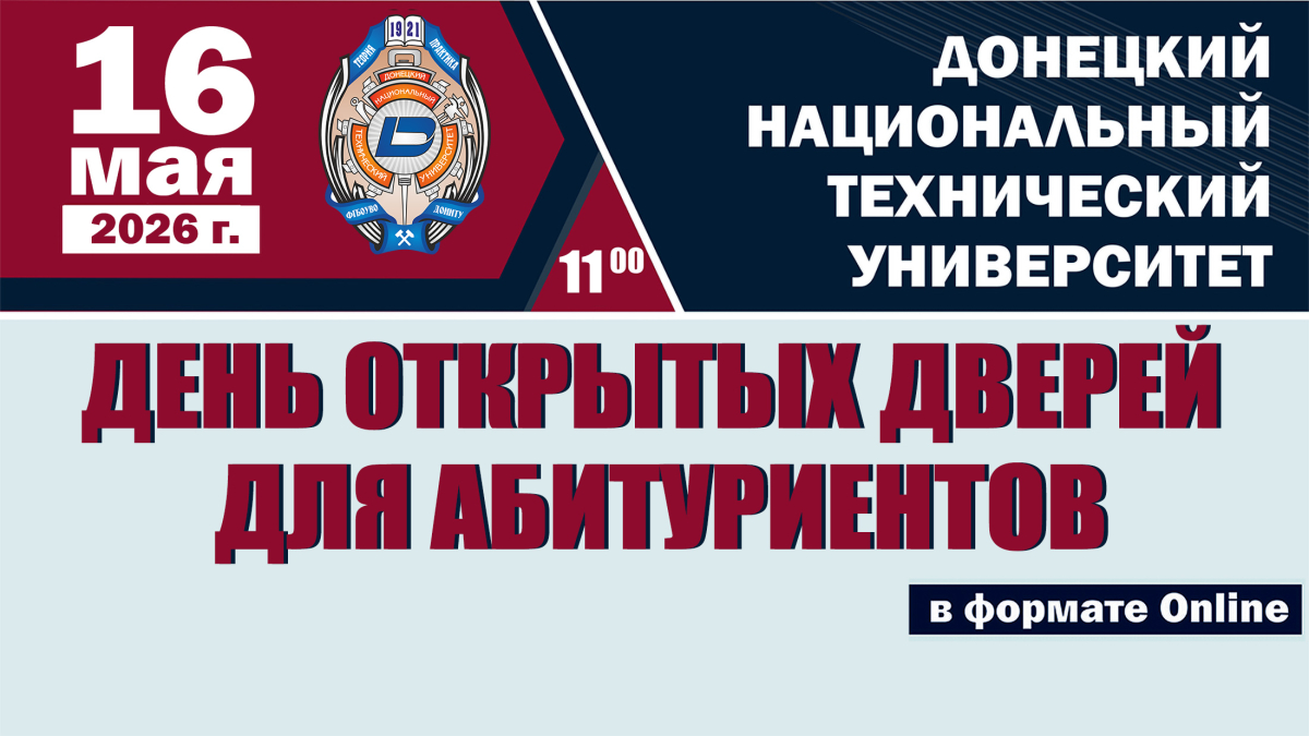 В Донецком национальном техническом университете в связи с началом вступительной кампании и с целью проведения профориентационной работы с абитуриентами 16 мая в 11:00 пройдет День открытых дверей в формате онлайн.
