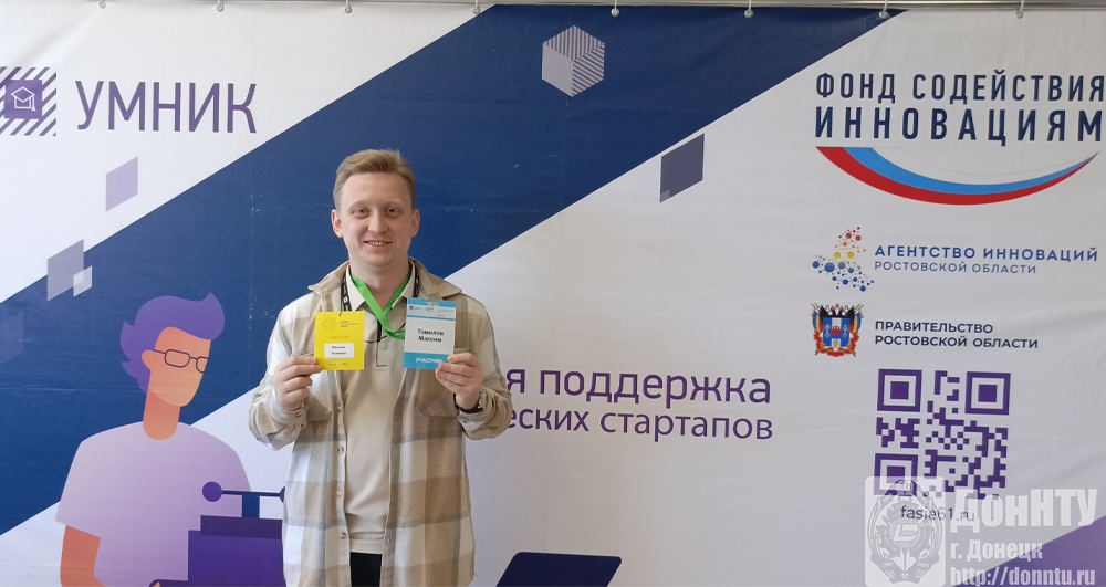 Параллельно на третьей площадке проходил конкурс «УМНИК» от Фонда содействия инновациям. Свой проект на этой площадке успешно защитил перед экспертами аспирант ДонНТУ М. Томилов. Всего в этом году благодаря активности начальника отдела ПКРС Е. В. Алексеевой, а также консультациям ростовских коллег из АНО «Цифропрактика» на конкурс ФСИ «УМНИК» Донецкий политех представил 50% всех заявок от новых регионов РФ.