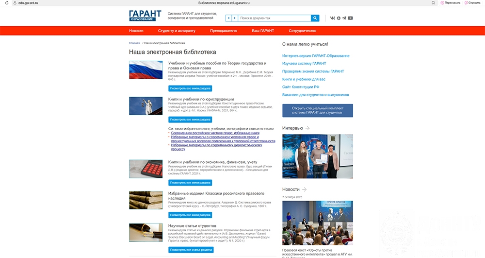 Ссылка для студентов и преподавателей для входа на специализированный учебный портал ГАРАНТ