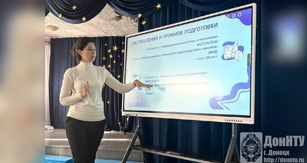 15 октября прошла профориентационная выставка-презентация «Цифровая карьера». Заведующая кафедрой экономической кибернетики Донецкого национального технического университета Елена Александровна Искра прочитала для школьников лекцию, в ходе которой они познакомились с актуальными специальностями в сфере ИТ, в том числе с направлениями подготовки факультета информационных систем и технологий ДонНТУ. Также ребята узнали о востребованности различных цифровых навыков на рынке труда, возможностях обучения и карьерного роста в цифровой сфере.