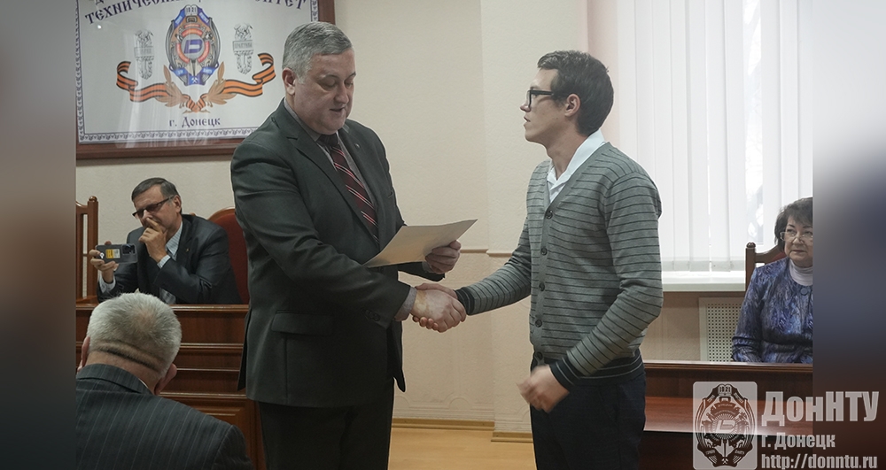 На заседании учёного совета ДонНТУ, которое прошло 28 ноября, состоялась торжественная церемония награждения студентов и преподавателей вуза. Мероприятие провёл первый проректор А. А. Каракозов.