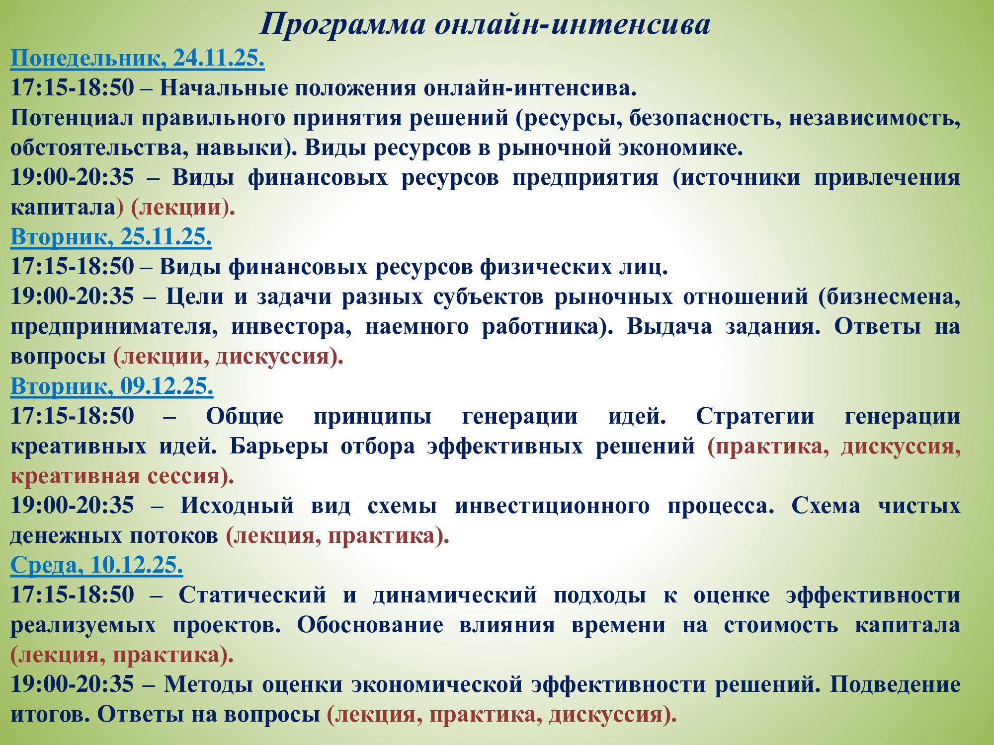 Программа онлайн-интенсива.