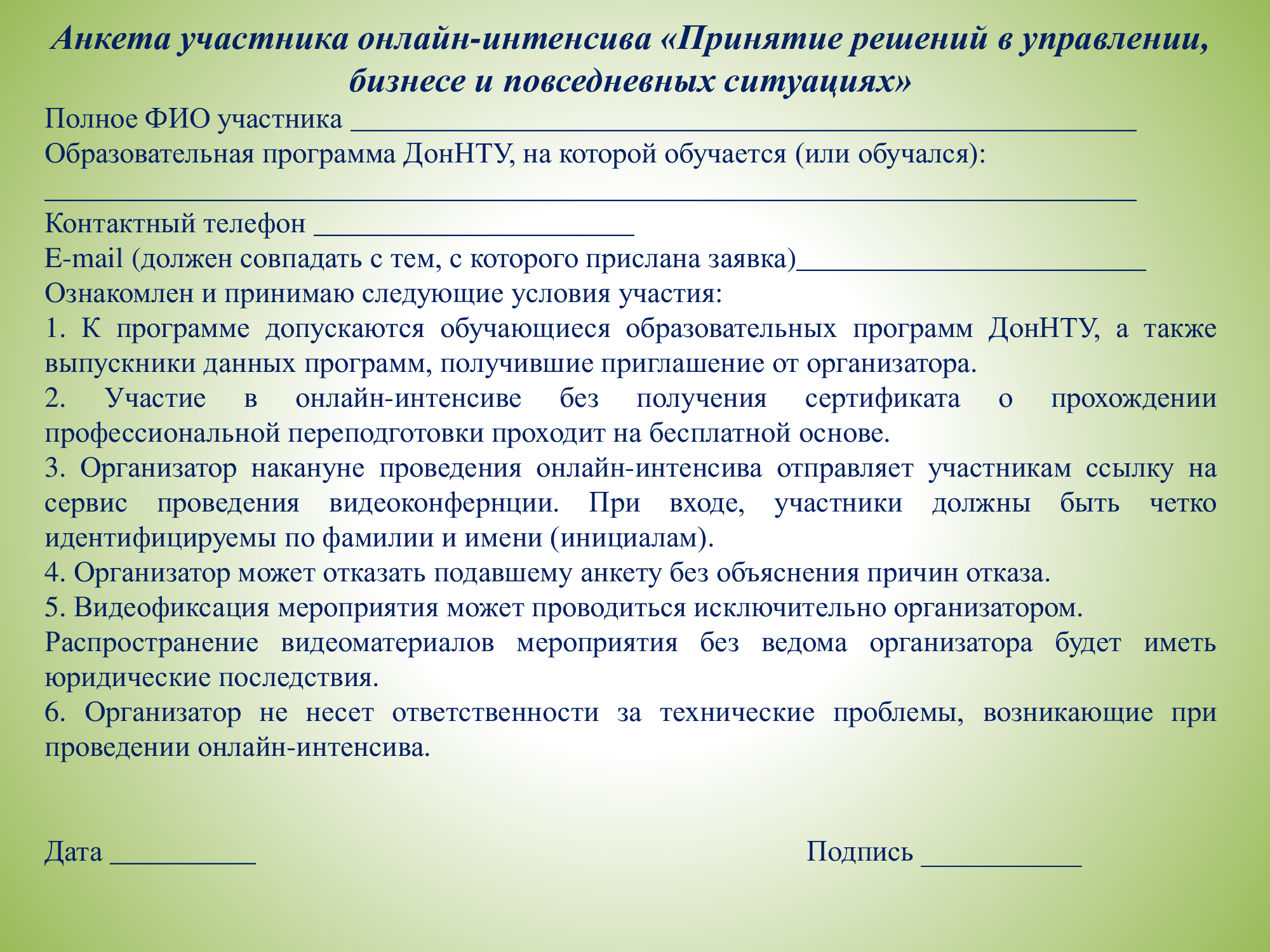 Анкета участника.