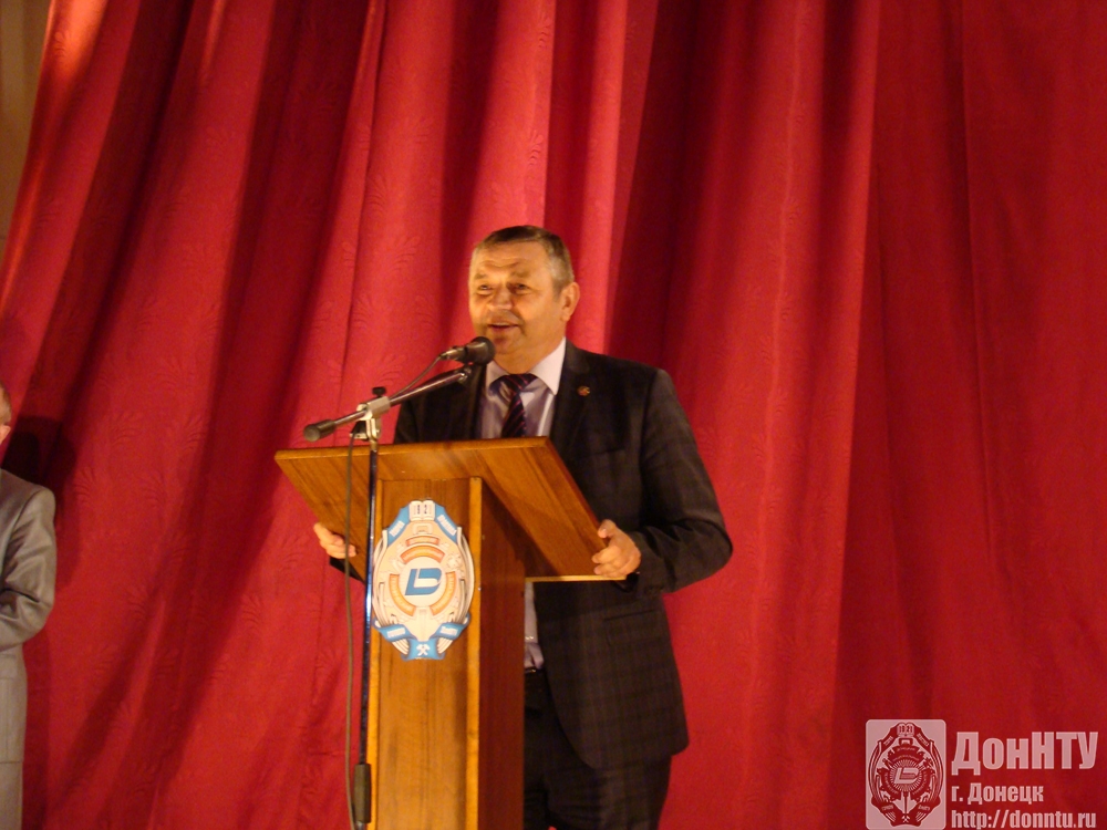 В мероприятии принял участие и первый заместитель Министра образования и науки Донецкой Народной Республики Михаил Кушаков. «Я рад поздравить первокурсников с поступлением в этот поистине выдающийся вуз. В одном ток-шоу украинский политолог сказал, что чуть ли не все выпускники школ нашей Республики уехали поступать в другие вузы. Но мы знаем, что это не так! Две тысячи человек поступили в Донецкий национальный технический университет, и это доказательство тому, что молодежь верит преподавателям и авторитету, который приобрел университет за время подготовки специалистов для индустрии нашего края», – отметил он. Замминистра выразил уверенность, что нынешние первокурсники успешно окончат университет и станут конкурентоспособными специалистами. «Желаю всем реализовать способности в различных направлениях, ведь студенческая жизнь разнообразна и интересна. В этом зале в свое время успешно играла команда КВН, которая прославила учебное заведение далеко за пределами Донецка. Думаю, что свои таланты в различных сферах проявите и вы. Успехов вам!» – сказал Михаил Кушаков.