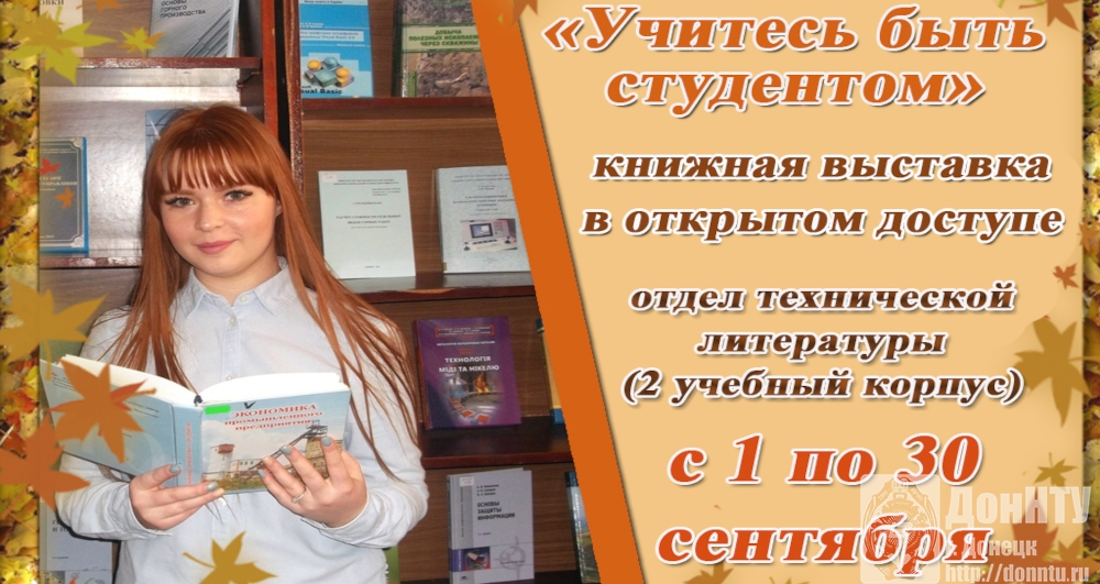 - «Учитесь быть студентом» – книжная выставка в открытом доступе (отдел технической литературы, 2 учебный корпус);