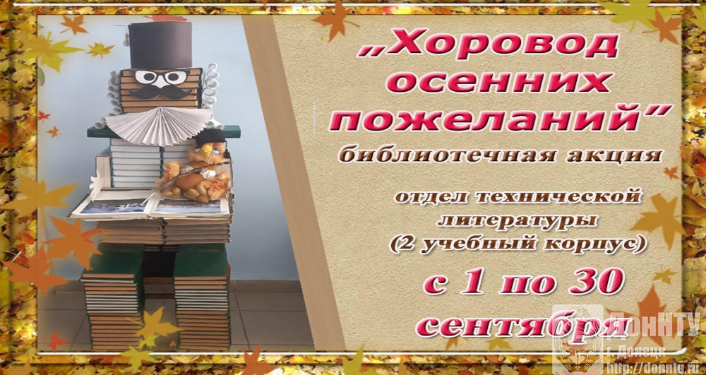 - «Хоровод осенних пожеланий» – библиотечная акция ( отдел технической литературы, 2 учебный корпус);