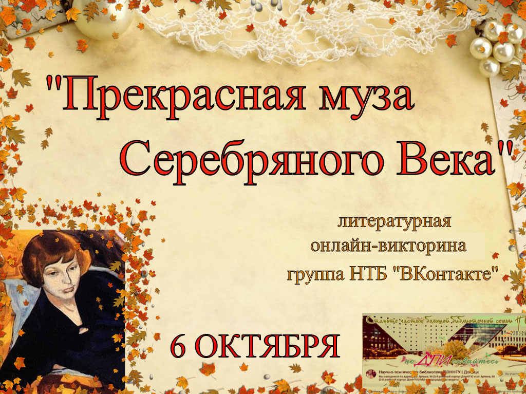НТБ ДонНТУ приглашает к участию в онлайн-викторине «Прекрасная муза Серебряного века»