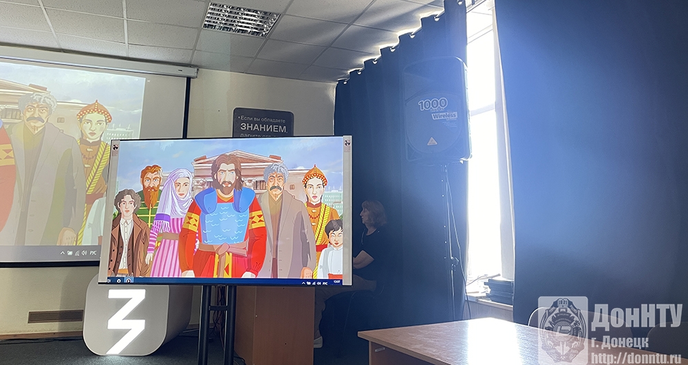 Заведующая научно-экспозиционным отделом этнографии Донецкого краеведческого музея Екатерина Сергеевна Береснева рассказала студентам, что в его экспозиции была организована планшетная выставка, посвящённая истории заселения Донбасса от древности до наших дней, которая и вдохновила сотрудников студии на создание фильма. Она отметила, что музей выиграл грант на реализацию этого проекта. Екатерина Сергеевна сказала, что длительность этой анимационной работы – 24 минуты и, конечно же, в ней не удалось полностью отразить историю нашего родного края. Также она пригласила всех присутствующих принять участие в конкурсе рисунков по сюжету фильма.