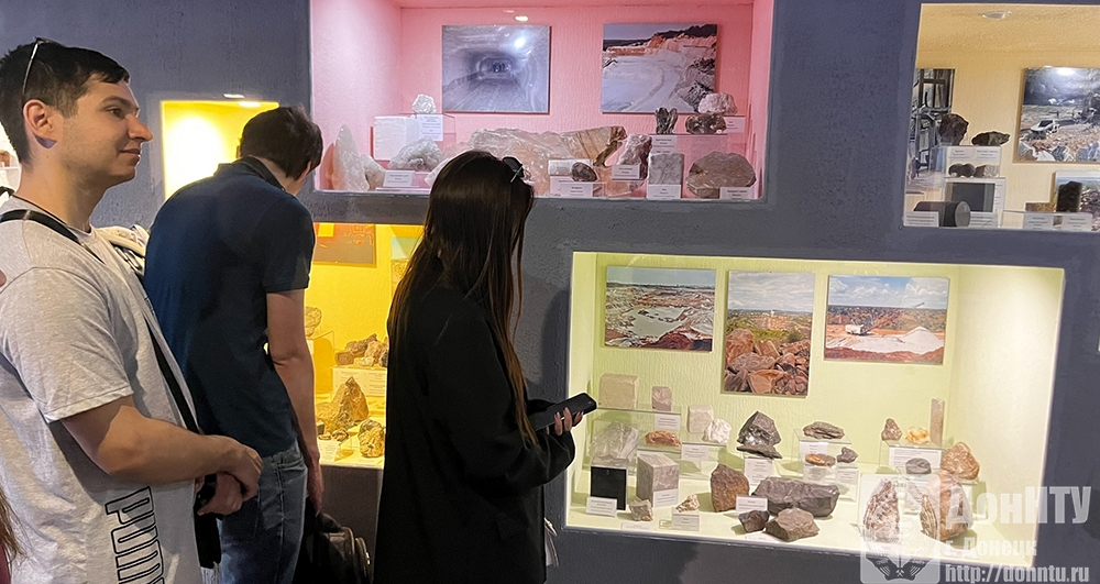 Экскурсанты познакомились с историей промышленной картографии Донбасса, спецификой разработки полезных ископаемых, узнали, как с их помощью разрабатывались каменноугольные пласты на территории региона, о деятельности выдающихся учёных, которые заложили основы изучения палеоботаники и палеозоологии. В выставочном зале можно было посмотреть панораму края с первыми шахтами. На макете они представлены в разрезе, наглядно демонстрирующем все пласты земной коры, подземное устройство шахты, процесс добычи угля под землёй. Здесь же примитивные орудия труда шахтёров, предметы их скудного быта.